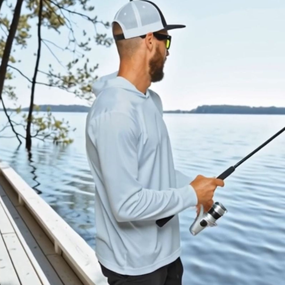 The Long Sleeve Sun Protection Hoodie is a top-tier choice for anglers, offering UPF 50 sun protection to shield you from harmful UV rays. Designed for performance and comfort, this fishing hoodie features quick-dry technology, moisture-wicking fabric, and stain resistance. With its lightweight, breathable design and built-in hood, the hoodie keeps you cool, dry, and protected, so you can fish comfortably all day while maintaining a sharp, stylish look.
