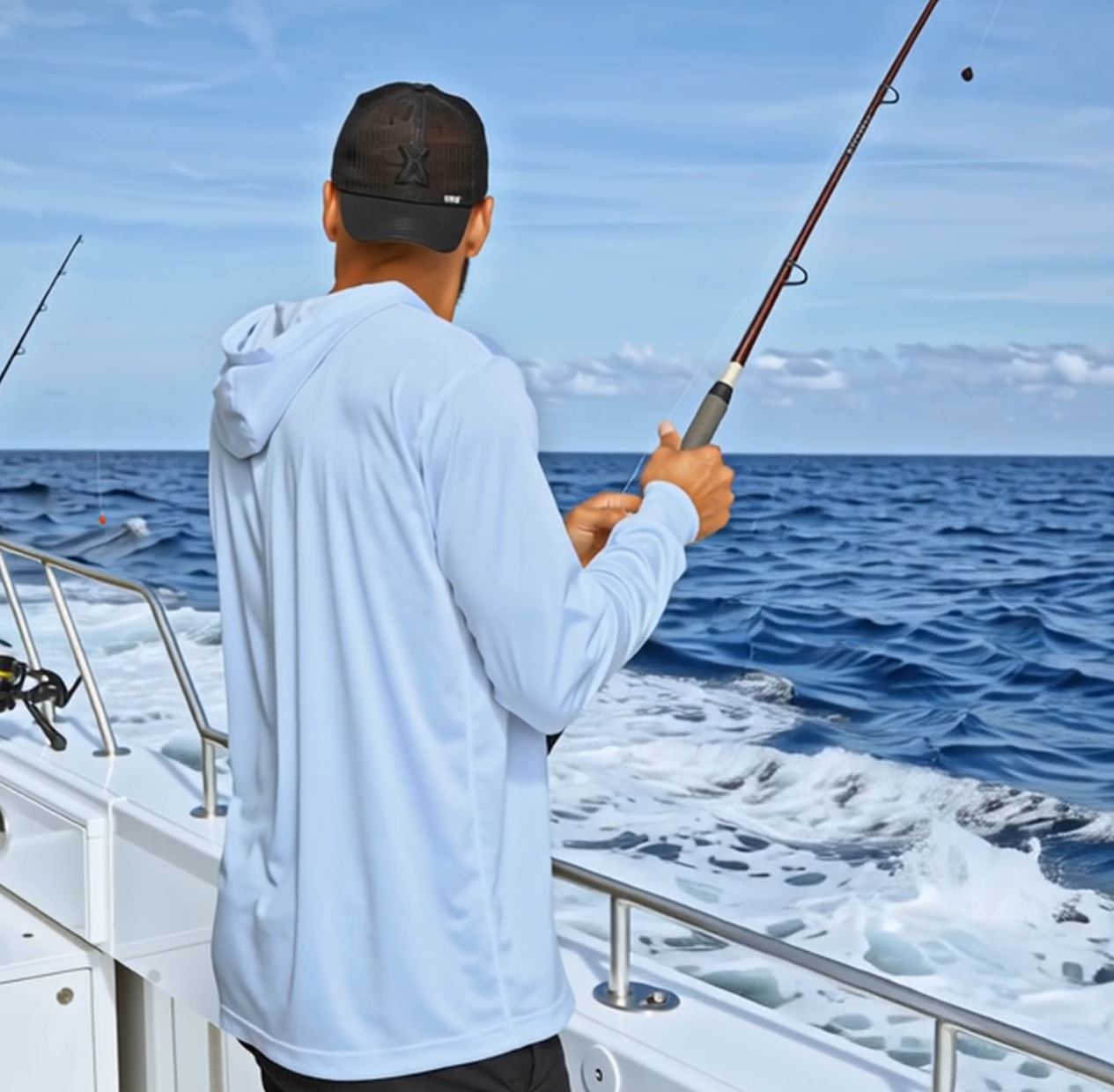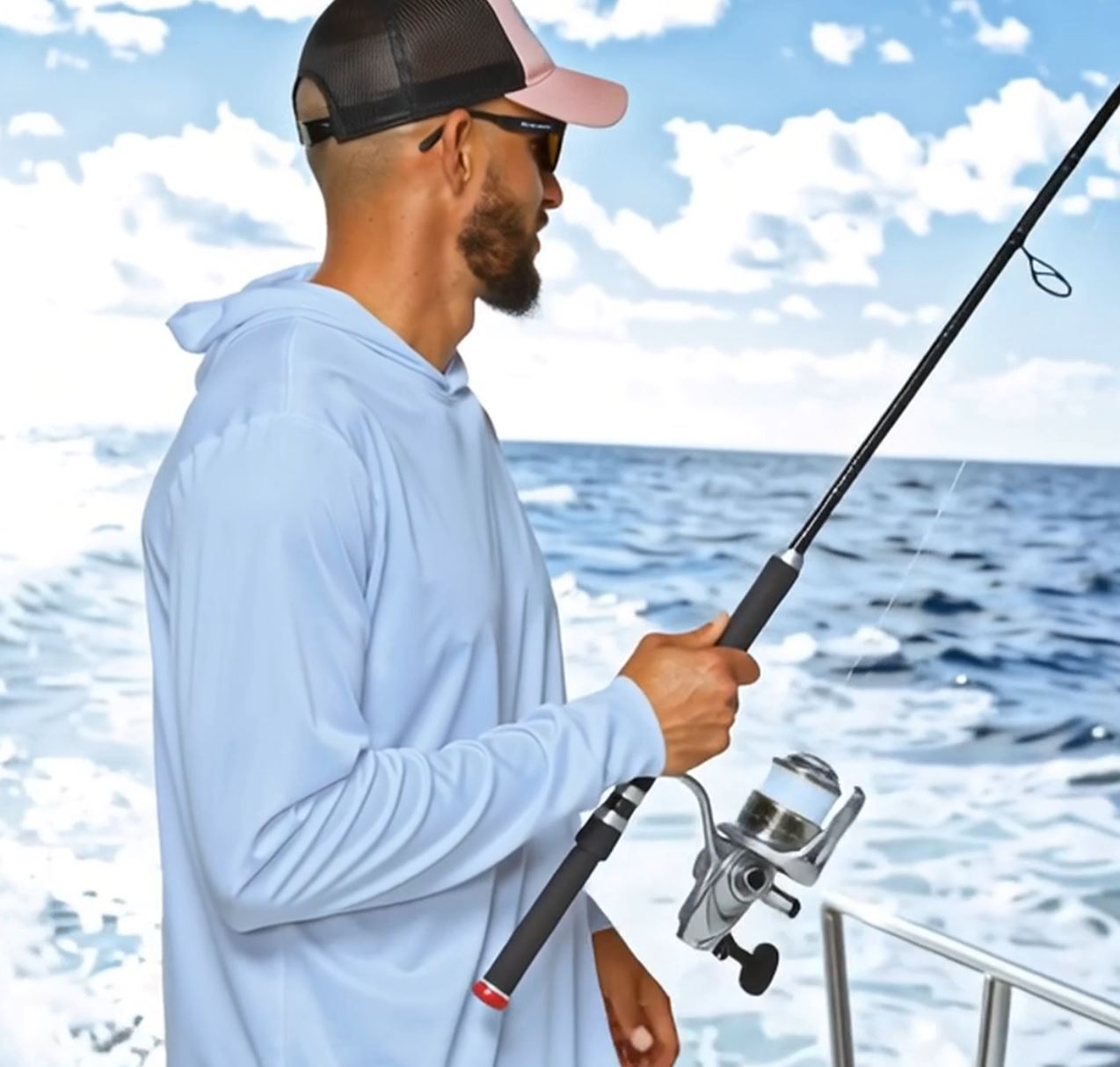 The Long Sleeve Sun Protection Hoodie is a top-tier choice for anglers, offering UPF 50 sun protection to shield you from harmful UV rays. Designed for performance and comfort, this fishing hoodie features quick-dry technology, moisture-wicking fabric, and stain resistance. With its lightweight, breathable design and built-in hood, the hoodie keeps you cool, dry, and protected, so you can fish comfortably all day while maintaining a sharp, stylish look.