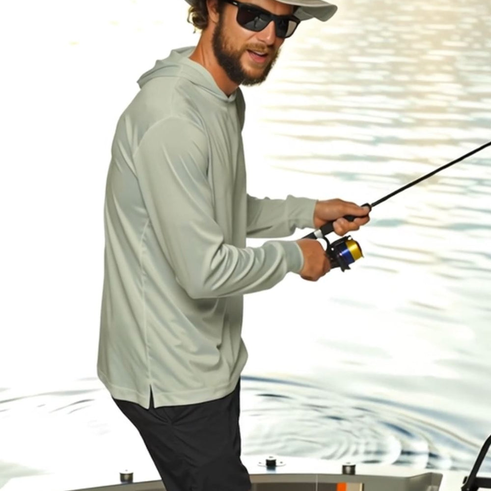 The Long Sleeve Sun Protection Hoodie is a top-tier choice for anglers, offering UPF 50 sun protection to shield you from harmful UV rays. Designed for performance and comfort, this fishing hoodie features quick-dry technology, moisture-wicking fabric, and stain resistance. With its lightweight, breathable design and built-in hood, the hoodie keeps you cool, dry, and protected, so you can fish comfortably all day while maintaining a sharp, stylish look.